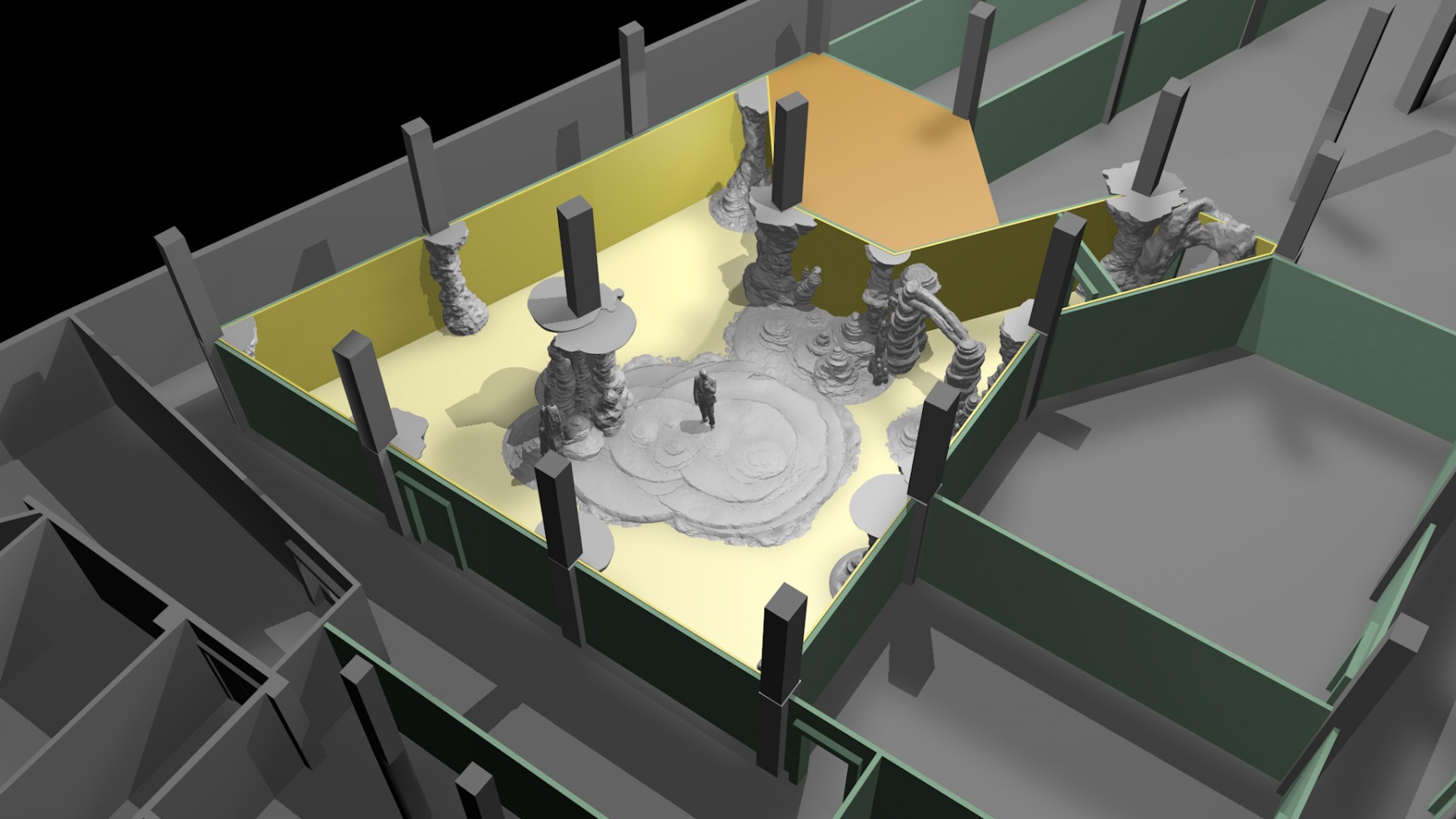 Working closely with the creative and production teams, we supported the development of themed sets, spatial layouts, and visual storytelling that evoke ancient tombs, hidden chambers, and lost civilisations. The completed experience is cinematic and tactile in nature, enabling visitors to step into the role of adventurers and actively engage with the world of Tomb Raider through physical exploration and shared discovery.